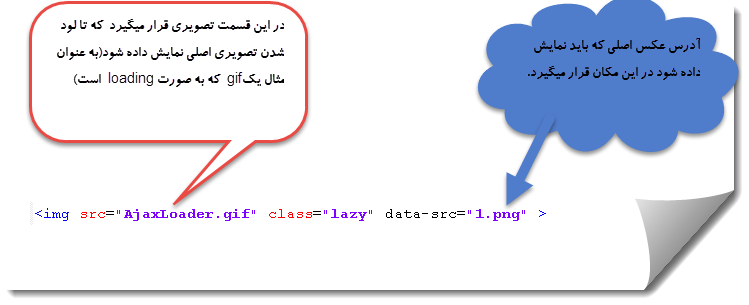 نکته: برای اسلایدرها و یا هر تصویری که دارای پهنا و ارتفاع مشخص شده است، اگر بخواهیم این روند را در آن پیاده کنیم بهتر است که gif مورد نظر را درون src مربوطه قرار ندهیم زیرا در هنگام لود دارای نمایش جالبی نیست و به صورت بسیار بزرگ نمایش داده میشود برای این مواقع بهتر است که درون Background آن تگ مربوطه قرار بگیرد تا عکس loading بزرگ نشود و به همان سایزی که است لود شود.